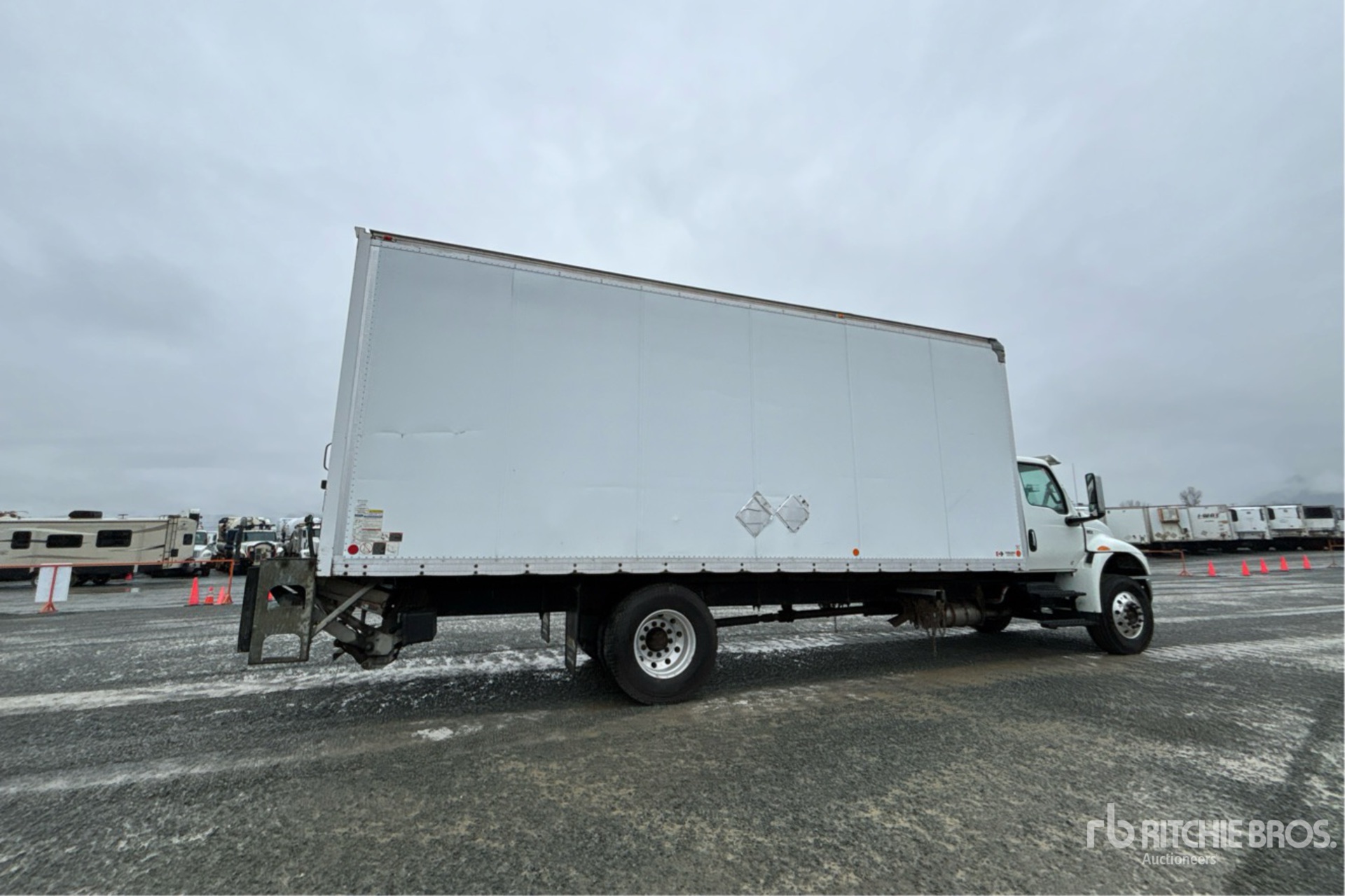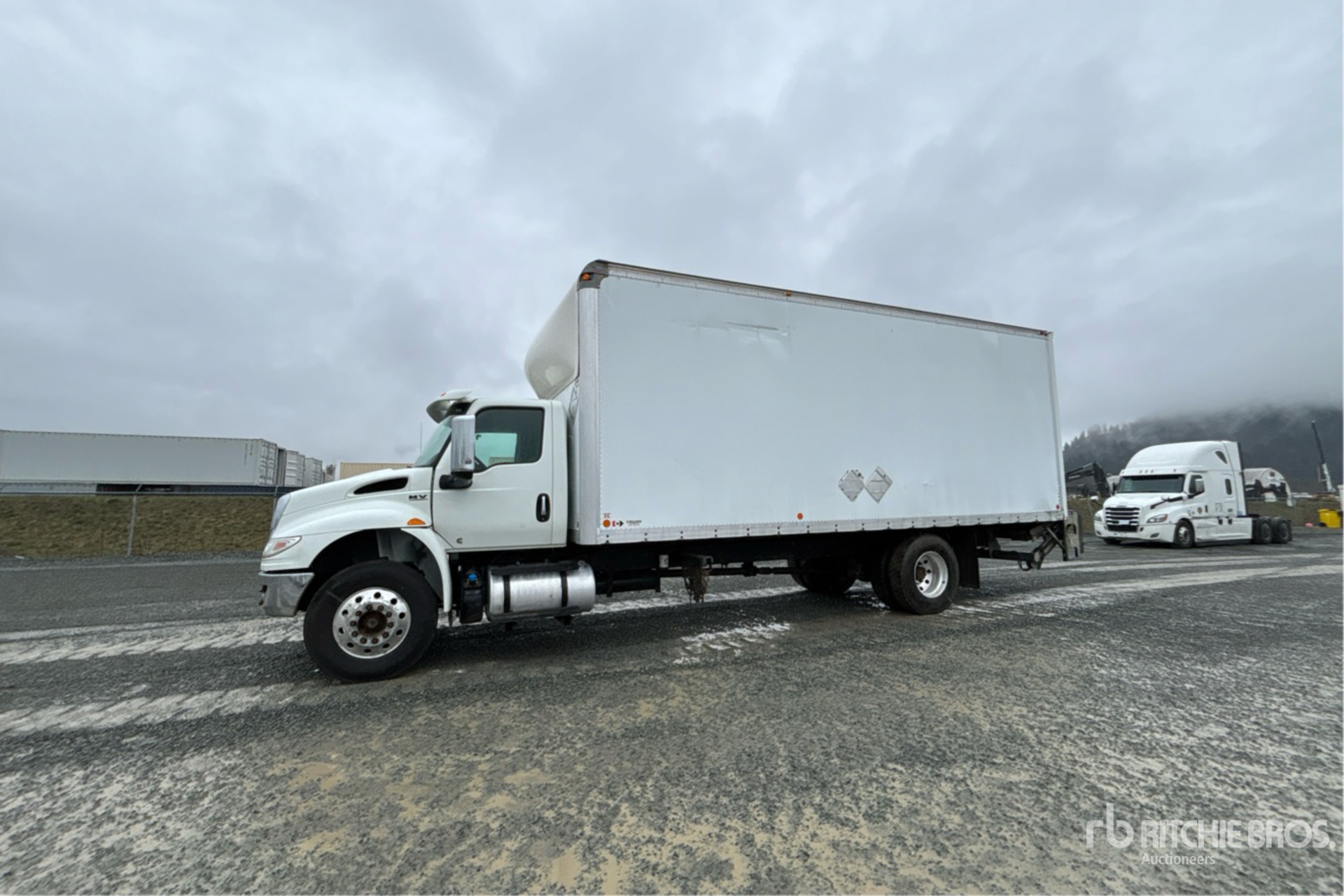 Cummins B6.7 6 Cylinder 6.7 L Diesel 260 hp Engine, 2019 US EPA Label, Requires Diesel Exhaust Fluid, 9869 Engine hrs, Exhaust Brake, Automatic Transmission, Differential Lock, 12000 lb Front Axle, 21000 lb Rears, 33000 lb GVWR, Air Ride Cab, Aluminum Wheels, 11R22.5, Air Ride Suspension, 254 in Wheelbase, Collins 24 ft x 102 in Wide x 110 in High Body, Liftgate