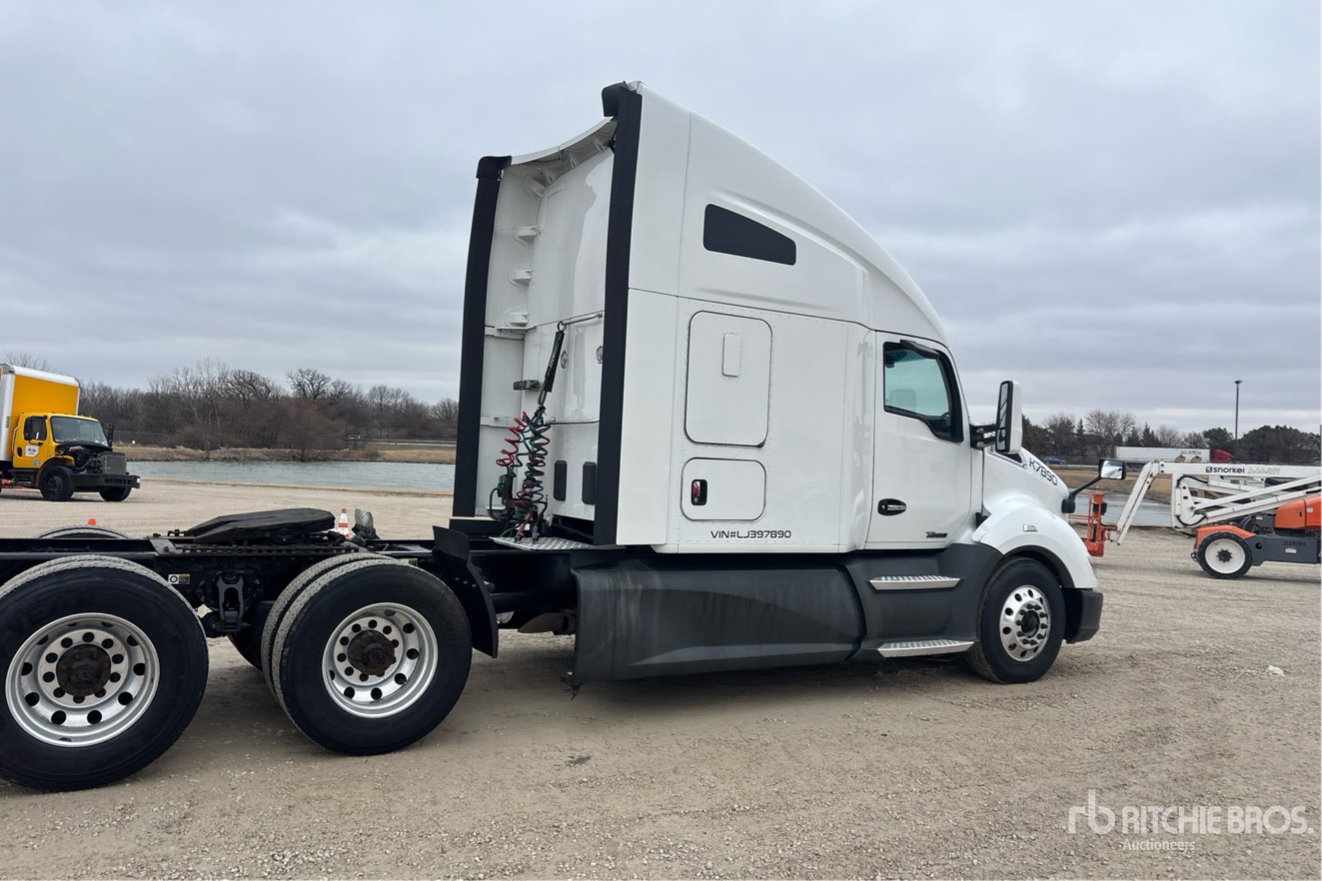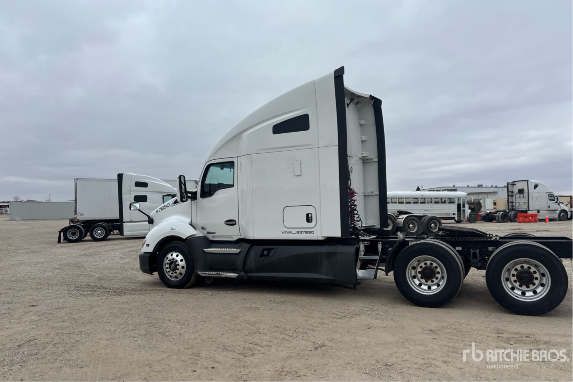 Located in Lane 19 Spot 18, Paccar MX-13 455 hp Engine, 2019 US EPA Label, 18845.2 Engine hrs, Automated Transmission, 12350 lb Front Axle, 40000 lb Rears, 52350 lb GVWR, Engine Brake, 72 in High Rise Sleeper Cab, Bunk Beds, 227 in Wheelbase, Air Suspension, Aluminum Outer Wheels, 295/75R22.5, Air Sliding 5th Wheel, Dual Fuel Tanks