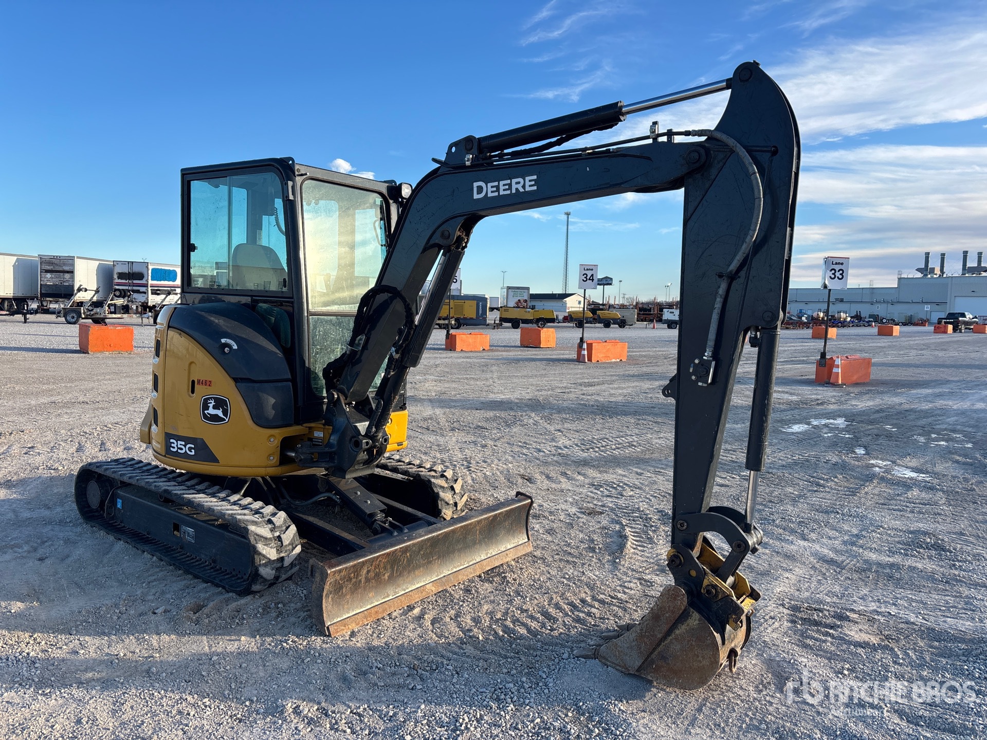 Enclosed Cab, Air Conditioner, Control Pattern Changer, Swing Boom, 5 ft 6 in Stick, Backfill Blade, 10 in Rubber Tracks
