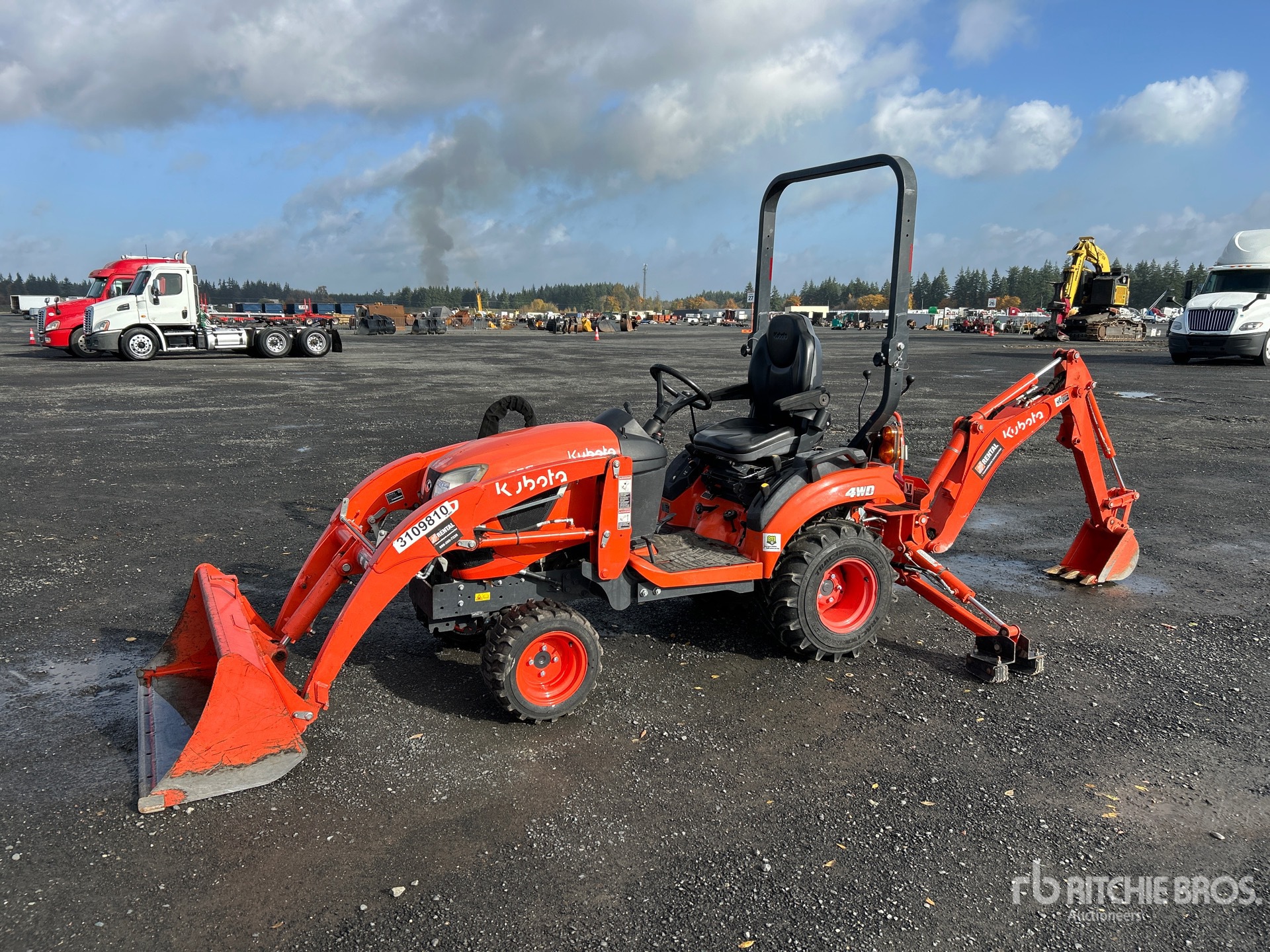 Located in Lane 6 Spot 38, Differential Lock, Hydrostatic Drive, Tier 4, 2021 US EPA Label, Kubota Loader w/Joystick, Kubota 46.5 in Bucket, Kubota Backhoe Attachment With 10 in Bucket, 18x8.50-10NHS Front Tires, 26x12-12 Rear Tires