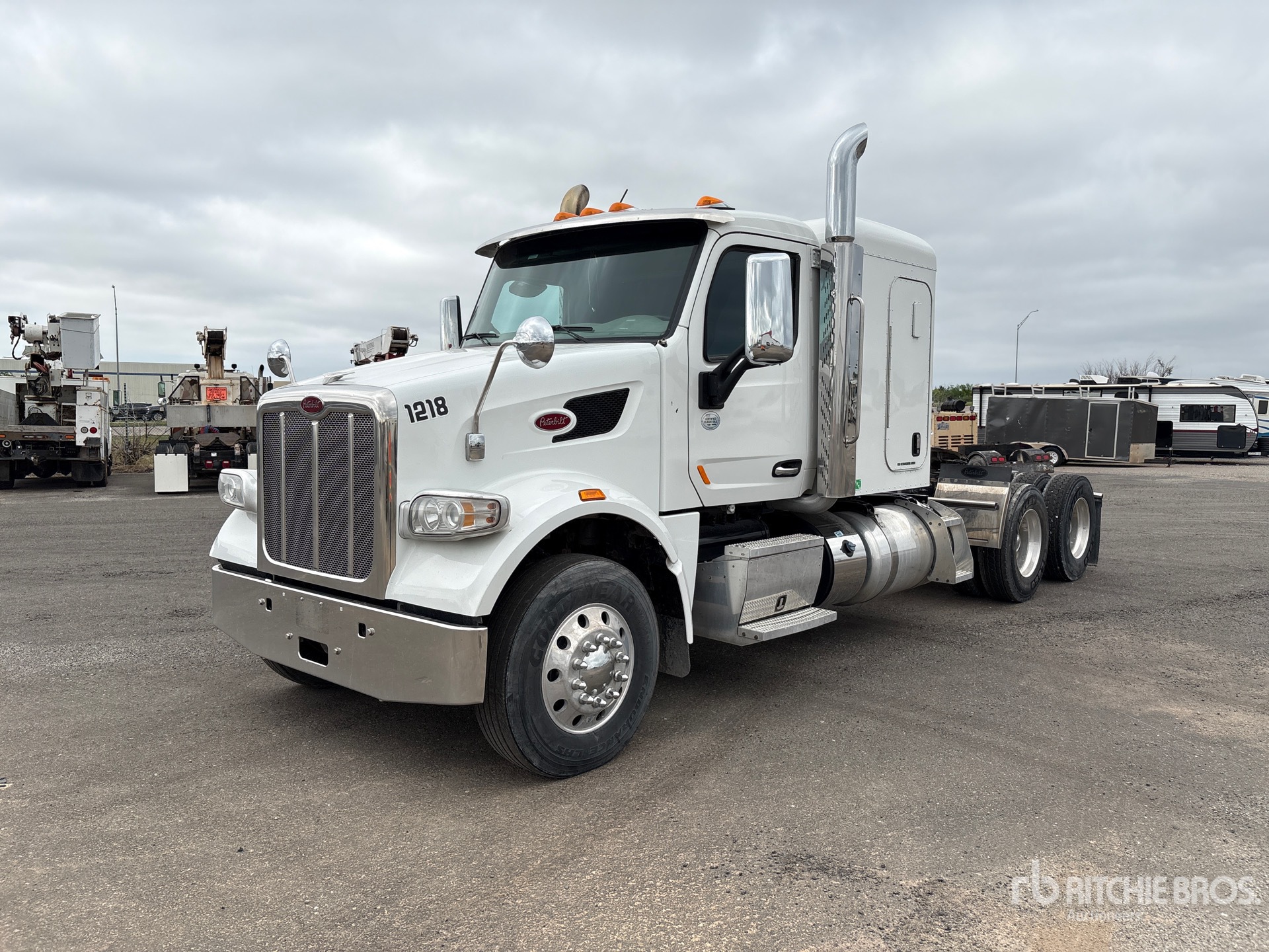 Paccar MX-13 510 hp Engine, 2020 US EPA Label, 11351 Engine hrs, Eaton Fuller 8-Speed Manual Transmission, 12350 lb Front Axle, 40000 lb Rears, 52350 lb GVWR, Engine Brake, Differential Lock, 48 in Flat Top Sleeper Cab, 235 in Wheelbase, Air Suspension, Aluminum Wheels, 295/75R22.5 Front Tires, 295/75R22.5 Rear Tires, Air Sliding 5th Wheel, Dual Fuel Tanks
