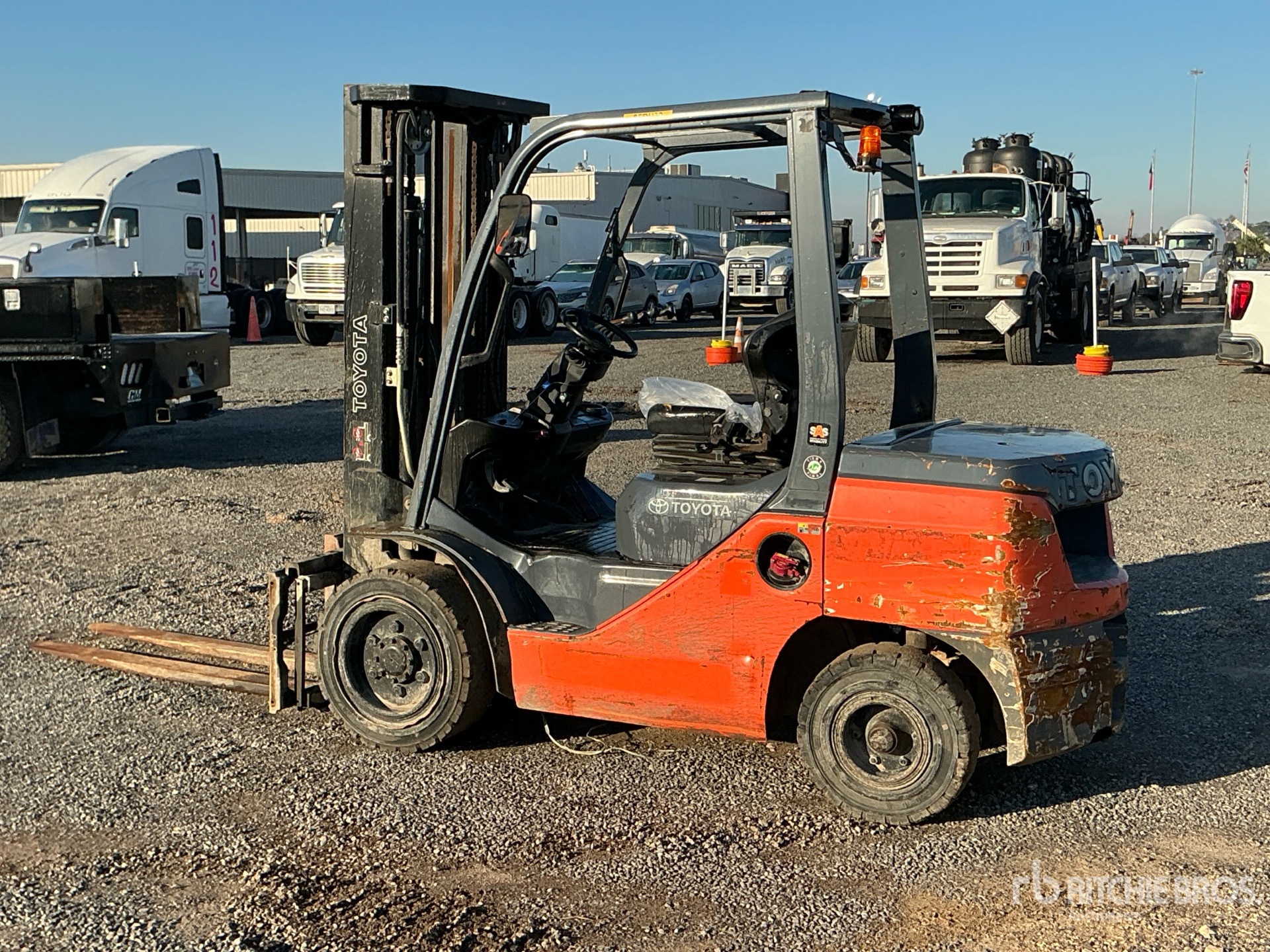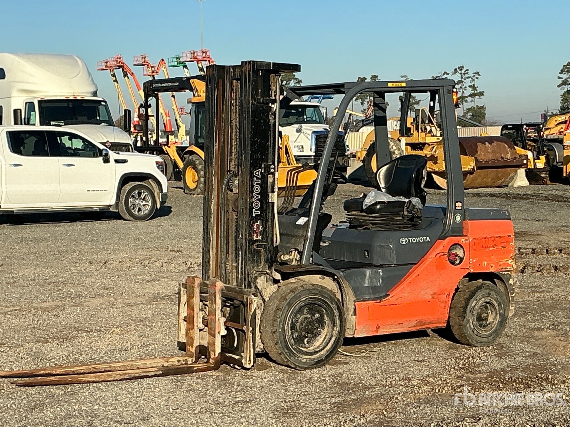 3 Stage Mast, Full Free Lift, 187 in Max Lift Height, 84 in Lowered Mast Height, 72 in Forks, Side Shift, 2021 US EPA Label, Toyota 3 Cylinder 36 kW 1.7 L Diesel Engine, Equipment-From-Herc-Rentals