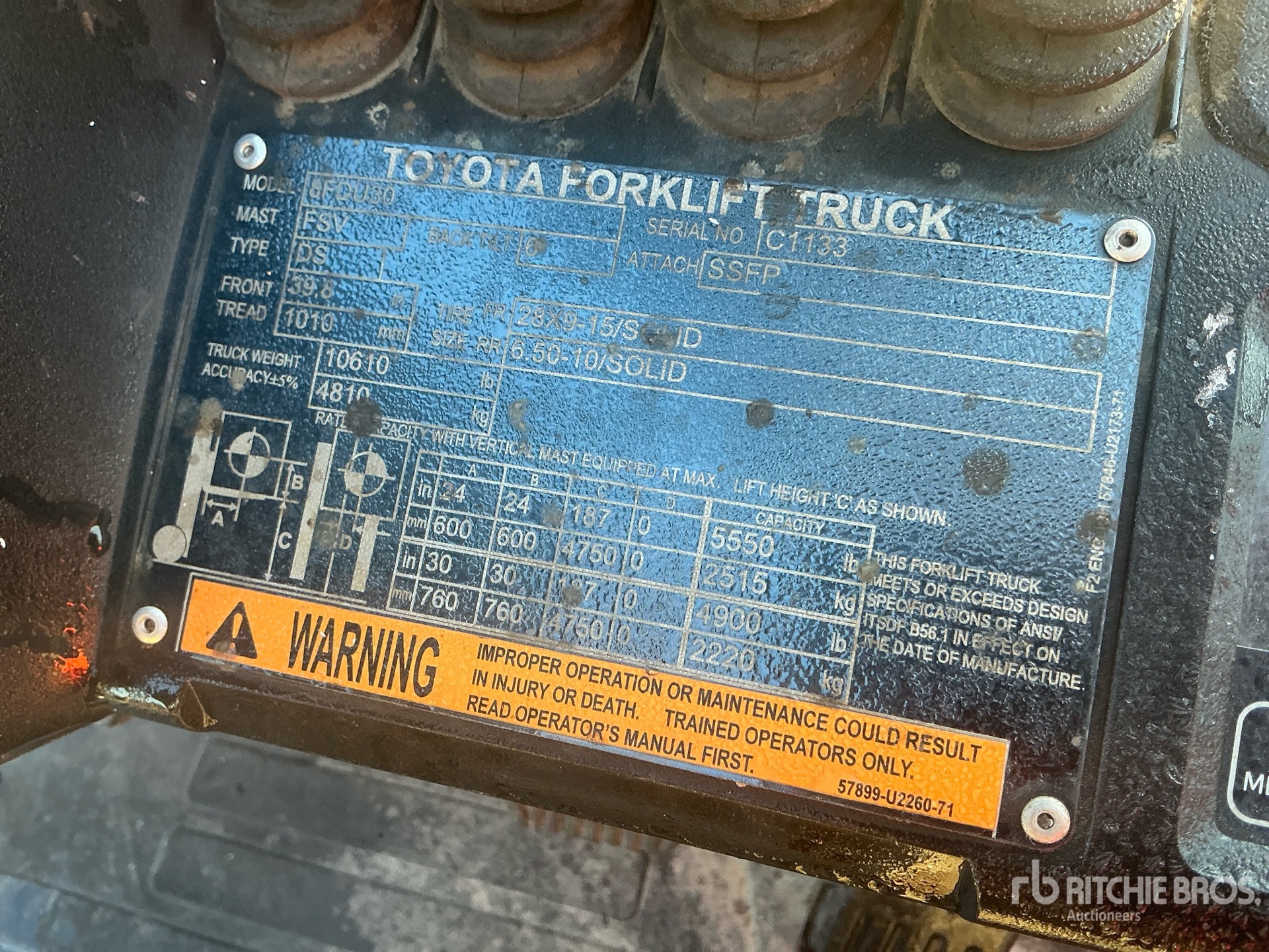 The detailed equipment information is limited in scope, and Ritchie Bros. Auctioneers has not inspected any aspects or components of the equipment other than those expressly set forth herein. Unless expressly stated, we make no representations or warranties, express or implied, concerning the equipment or its components, including without limitation any representations or warranties concerning functionality, conformity or compliance with any safety standard or requirement of any applicable authority or regulatory body, fitness for any particular purpose, or merchantability. You are strongly advised to perform your own detailed inspection of the equipment prior to bidding.