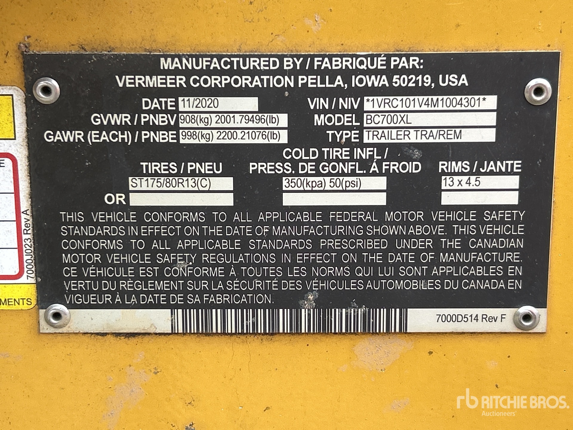 The detailed equipment information is limited in scope, and Ritchie Bros. Auctioneers has not inspected any aspects or components of the equipment other than those expressly set forth herein. Unless expressly stated, we make no representations or warranties, express or implied, concerning the equipment or its components, including without limitation any representations or warranties concerning functionality, conformity or compliance with any safety standard or requirement of any applicable authority or regulatory body, fitness for any particular purpose, or merchantability. You are strongly advised to perform your own detailed inspection of the equipment prior to bidding.