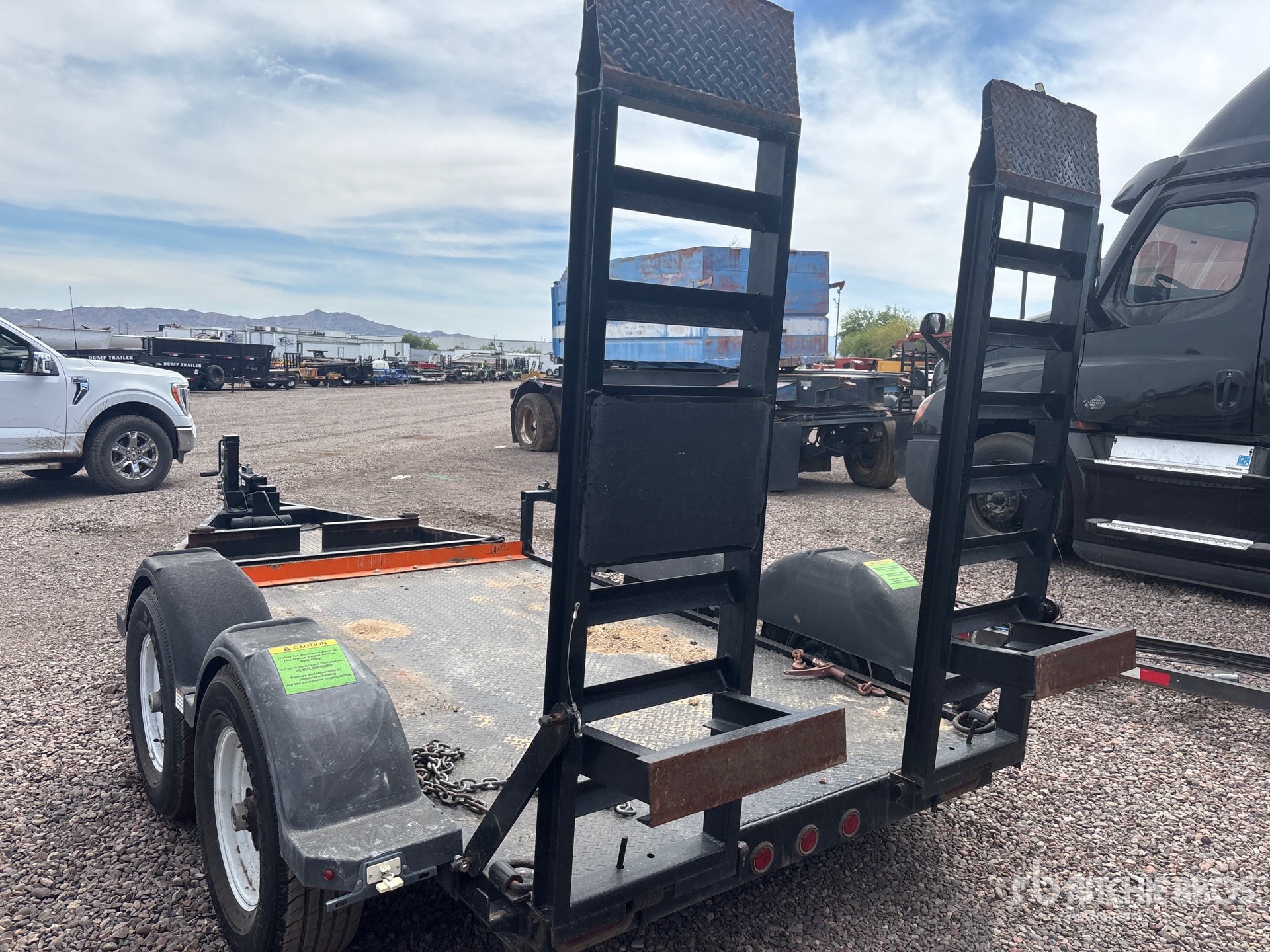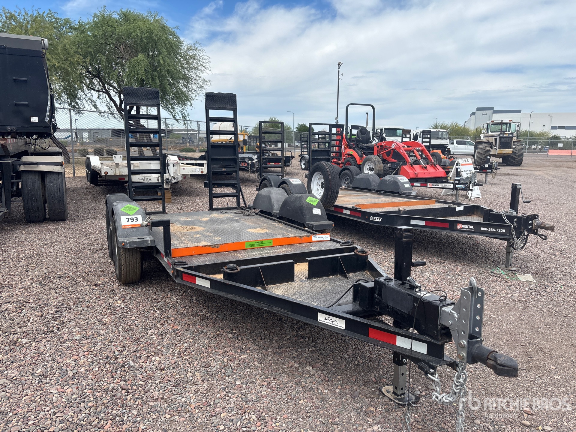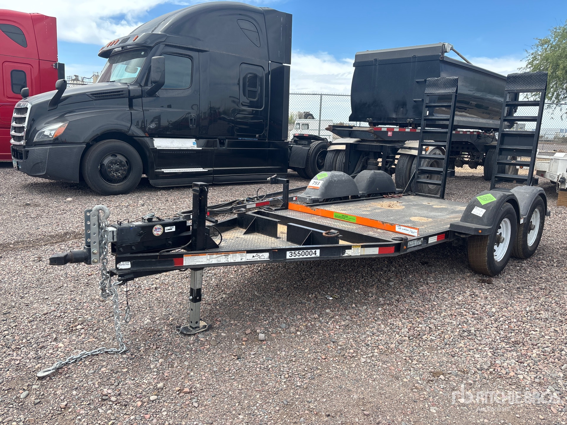 Ball Hitch, Spring Suspension, Surge Brakes, 16 ft Main Deck, 64 in Overall Deck Width, Manual Ramps, Steel Decking, 225/75R15 Tires, 7000 lb GVWR