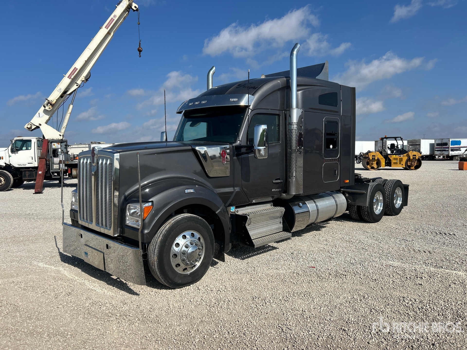 Located in Lane 4 Spot 11, Paccar MX-13 510 hp Engine, 2022 US EPA Label, 9757 Engine hrs, Paccar PO-16F112 12-Speed Automated, 13200 lb Front Axle, 38000 lb Rears, 51200 lb GVWR, Engine Brake, 72 in Mid Roof Sleeper Cab, Auxiliary Power Unit, Thermo King Sleeper Air Conditioner, 265 in Wheelbase, Air Suspension, Aluminum Wheels, 295/75R22.5, Air Sliding 5th Wheel, Dual Fuel Tanks