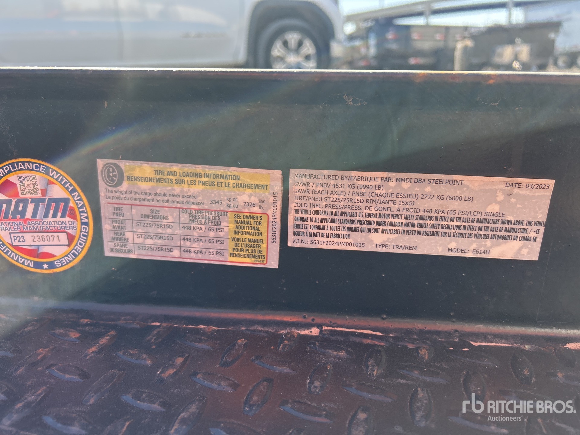 Ball Hitch, Torsion Axle, Electric Brakes, 12 ft Main Deck, 72 in Usable Deck Width, 72 in Overall Deck Width, Manual Ramps, Steel Decking, 225/75R15 Tires, 9990 lb GVWR
