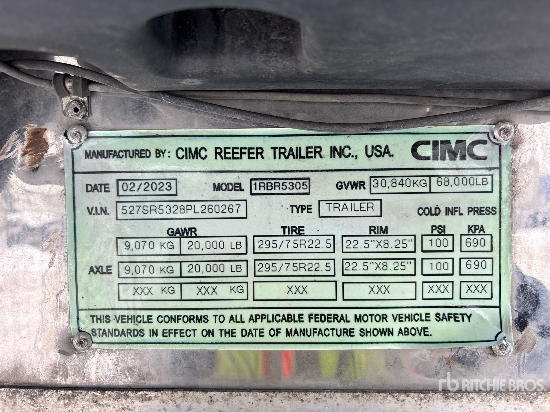 Located in Lane 23 Spot 44, Carrier 7500 X4 Refrigeration Unit, 9333 Total Hours, Air Ride Suspension, Side Skirts, Aluminum Floor, Swing Door, 295/75R22.5 Tires 68000 lb GVWR