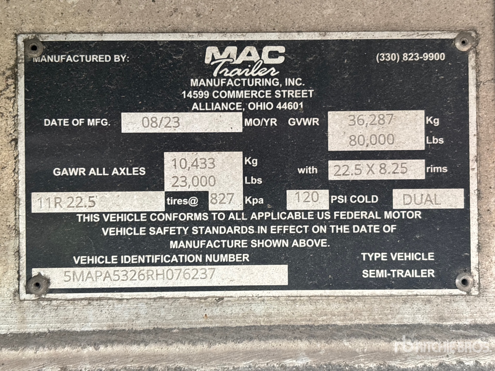 The detailed equipment information is limited in scope, and Ritchie Bros. Auctioneers has not inspected any aspects or components of the equipment other than those expressly set forth herein. Unless expressly stated, we make no representations or warranties, express or implied, concerning the equipment or its components, including without limitation any representations or warranties concerning functionality, conformity or compliance with any safety standard or requirement of any applicable authority or regulatory body, fitness for any particular purpose, or merchantability. You are strongly advised to perform your own detailed inspection of the equipment prior to bidding.