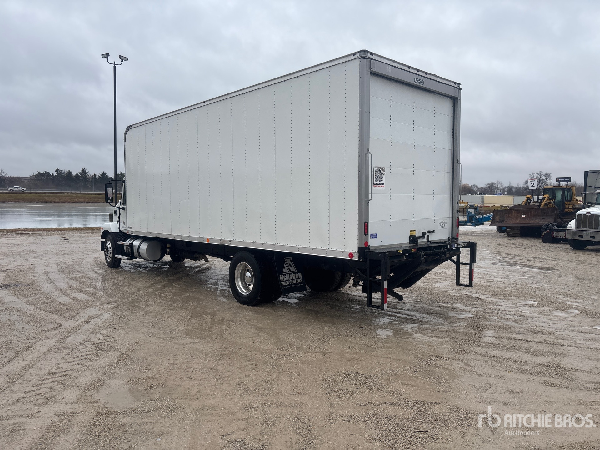 Cummins B6.7 300 6 Cylinder 6.7 L Diesel 300 hp Engine, 2023 US EPA Label, 9966 Engine hrs, Engine Brake, 10000 lb Front Axle, 17000 lb Rears, 25995 lb GVWR, 36 in Sleeper Cab, Aluminum Wheels, 11R22.5 Front Tires, 11R22.5 Rear Tires, Air Ride Suspension, 270 in Wheelbase, 22 ft x 96 in Wide x 96 in High Body, Liftgate