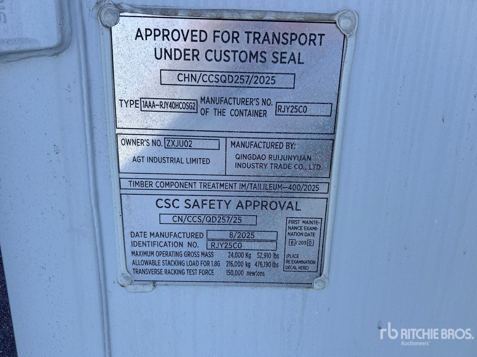 A qualified Ritchie Bros. employee collected detailed equipment information and performed functional tests on the key components of this asset. You, or a proxy, may also inspect any items on site prior to bidding on auction day.