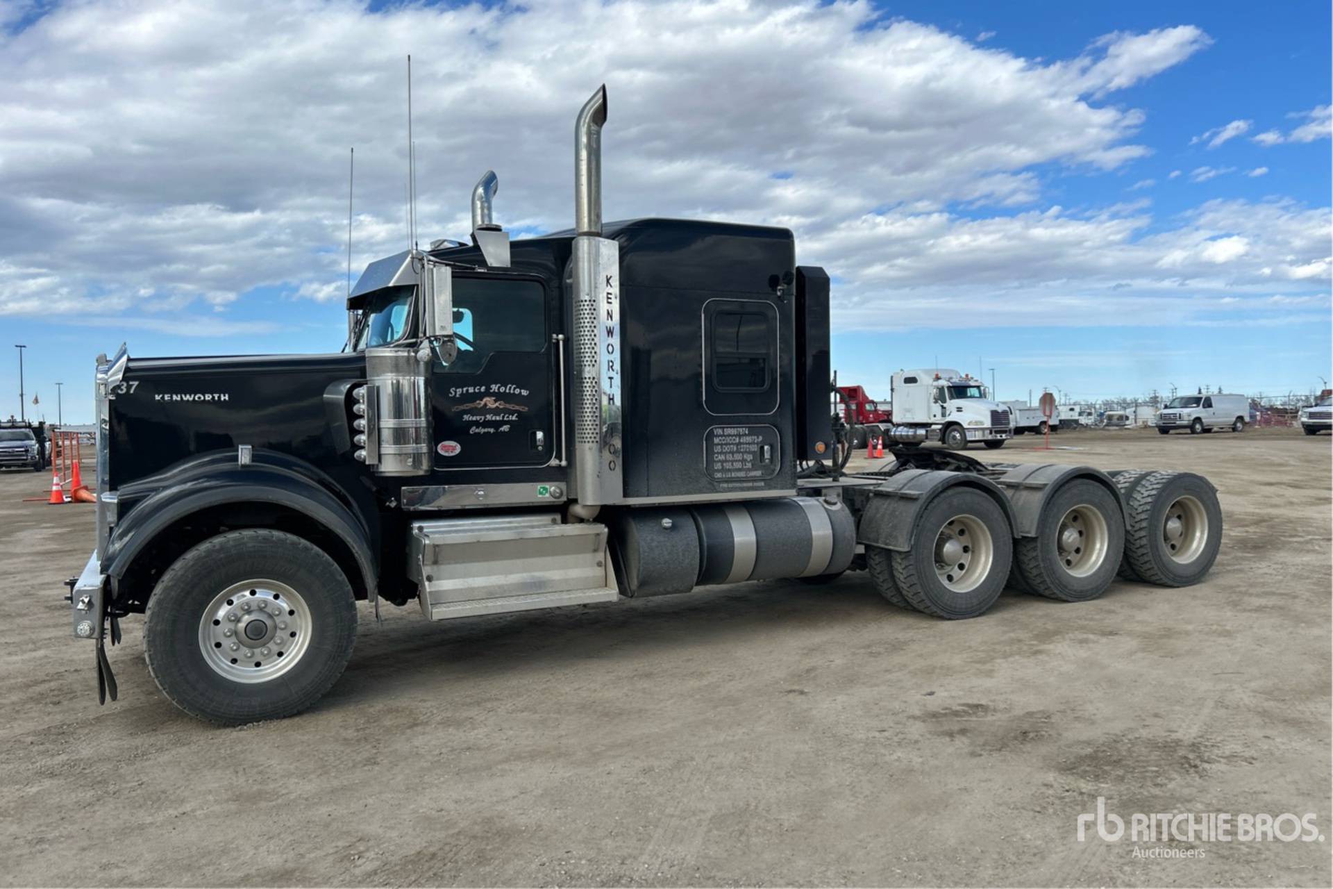 Cummins X15 605 hp Engine, 2024 US EPA Label, 3683 Engine hrs, Eaton Fuller RTLO-20918B 18-Speed Manual, Tremec 4-Speed Auxiliary Transmission, 20000 lb Front Axle, 68000 lb Rears, 88000 lb GVWR, Engine Brake, 72 in Flat Top Sleeper Cab, 294 in Wheelbase, Air Suspension, Aluminum Wheels, 425/65R22.5 Front Tires, 11R24.5 Rear Tires, Dual Steering Boxes, Double Frame, Air Sliding 5th Wheel, Dual Fuel Tanks, Headache Rack, 2050 Engine Torque , Equipped with Samsara ELT, Complete-Dispersal-Spruce-Hollow-Heavy-Haul-Ltd