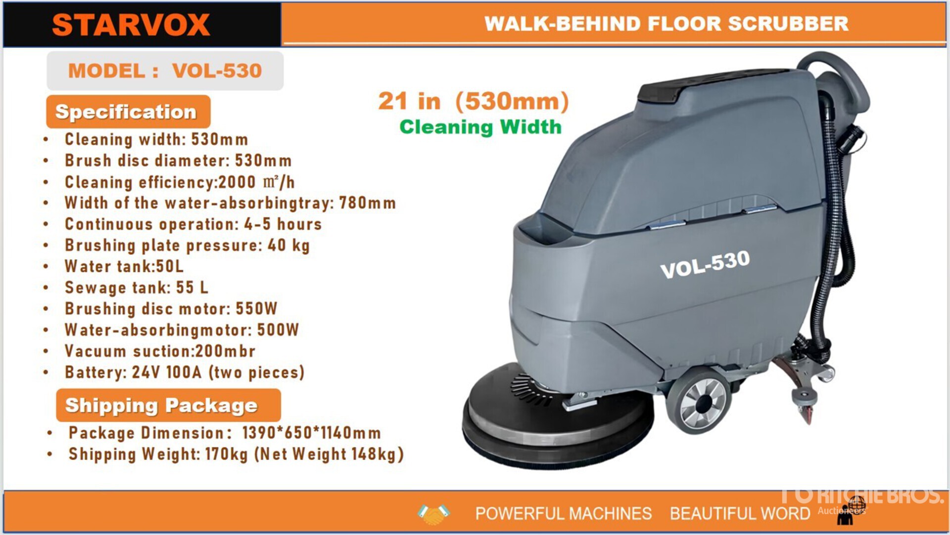 21 in Working Width, Water System, Rear Squeegee, 24 Volt Operating System