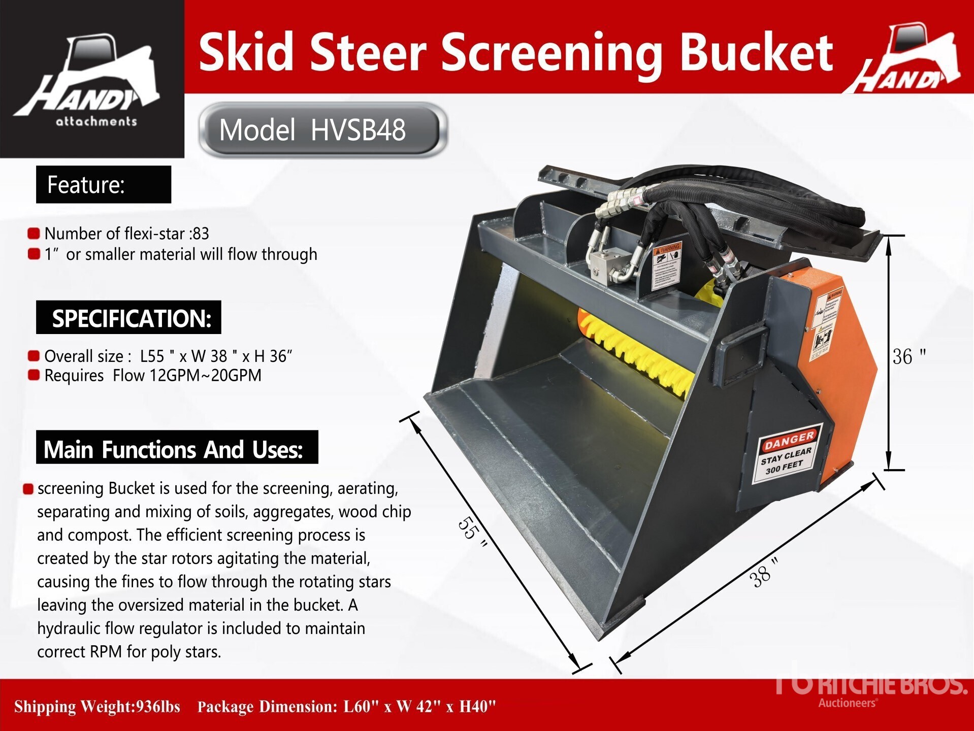 2026 Handy HVSB48 55 in Skid Steer Screening Bucket (Unused)
