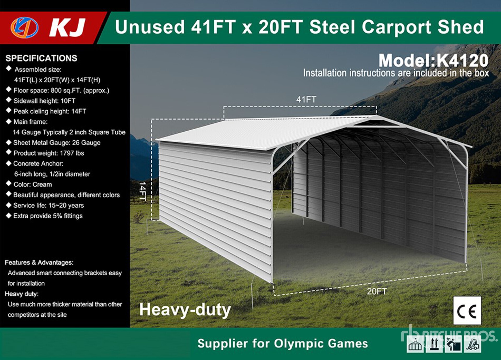 14 ft Total Height, 10 ft Sidewall Height, Product images displayed are stock photos. Item is new/unused.