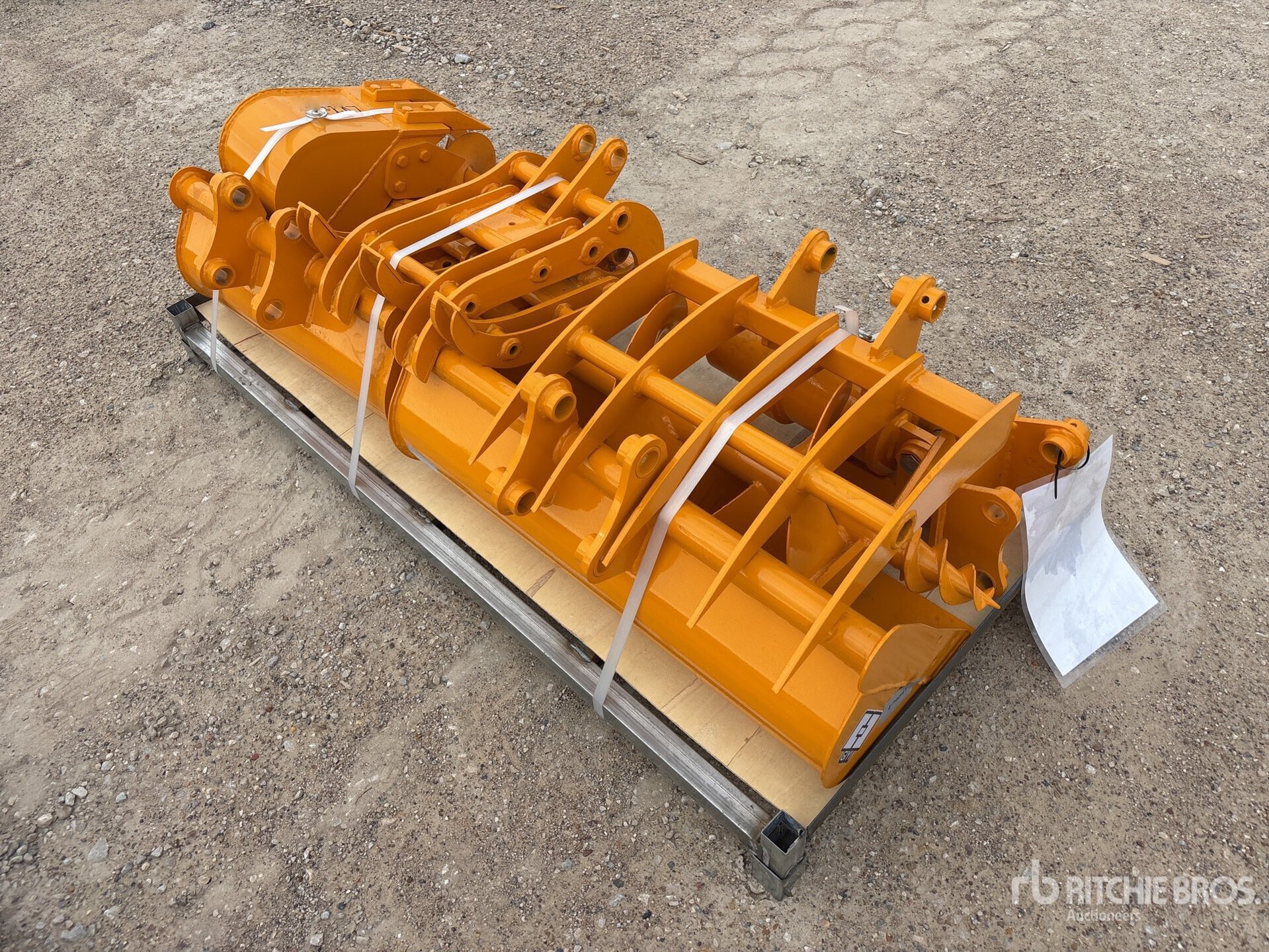 (1) Rake, (1) Ripper, (1) Grapple, (1) Auger w/ 12 in & 16 in Auger Bits, (1) 8 in Narrow Bucket, (1) 24 in Bucket, (1) 32 in Bucket ; Product images displayed are stock photos. Item is new/unused.