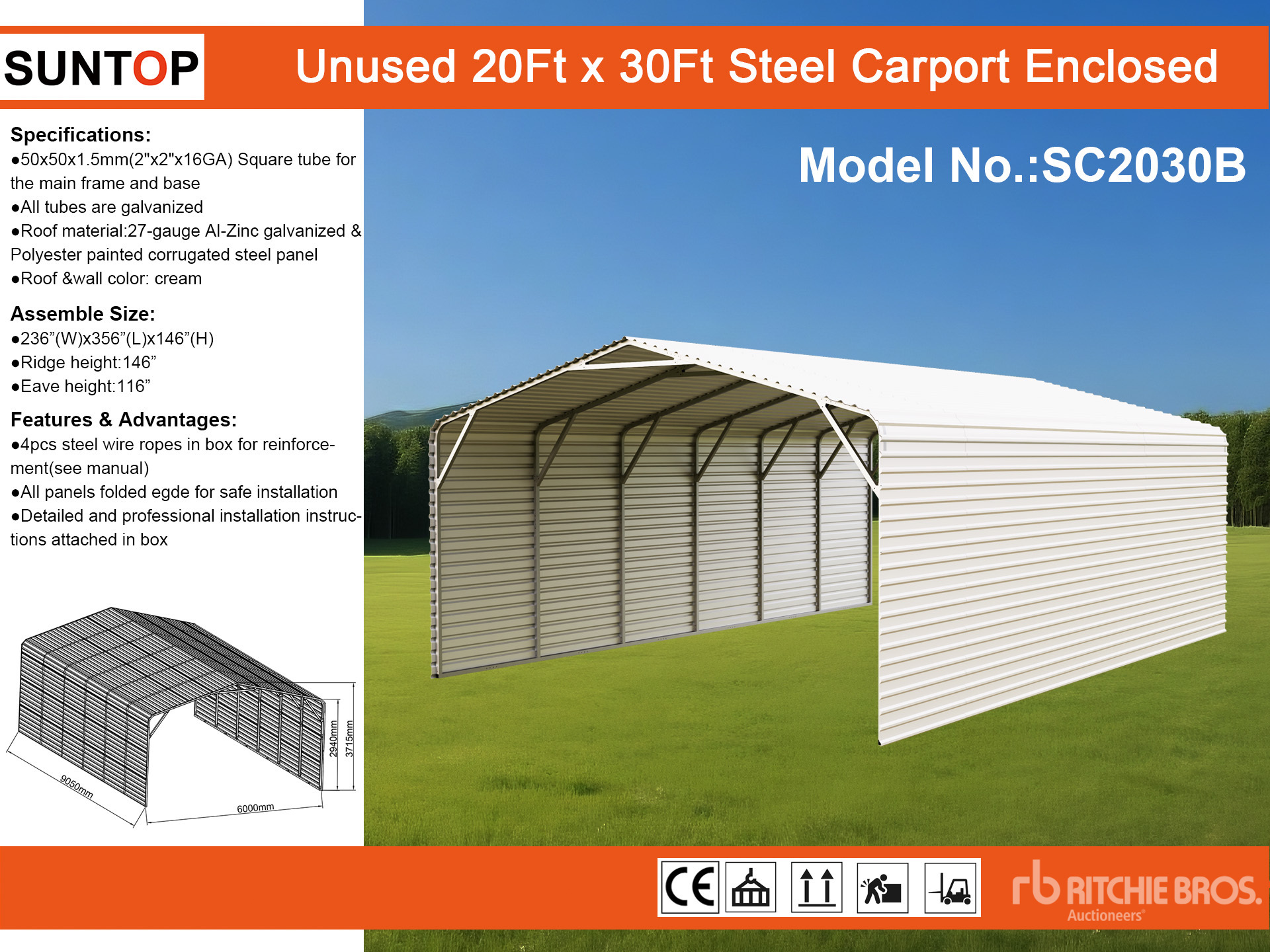 2026 SUNTOP SC2030B 20 ft x 30 ft Steel Enclosed Carport (Unused)