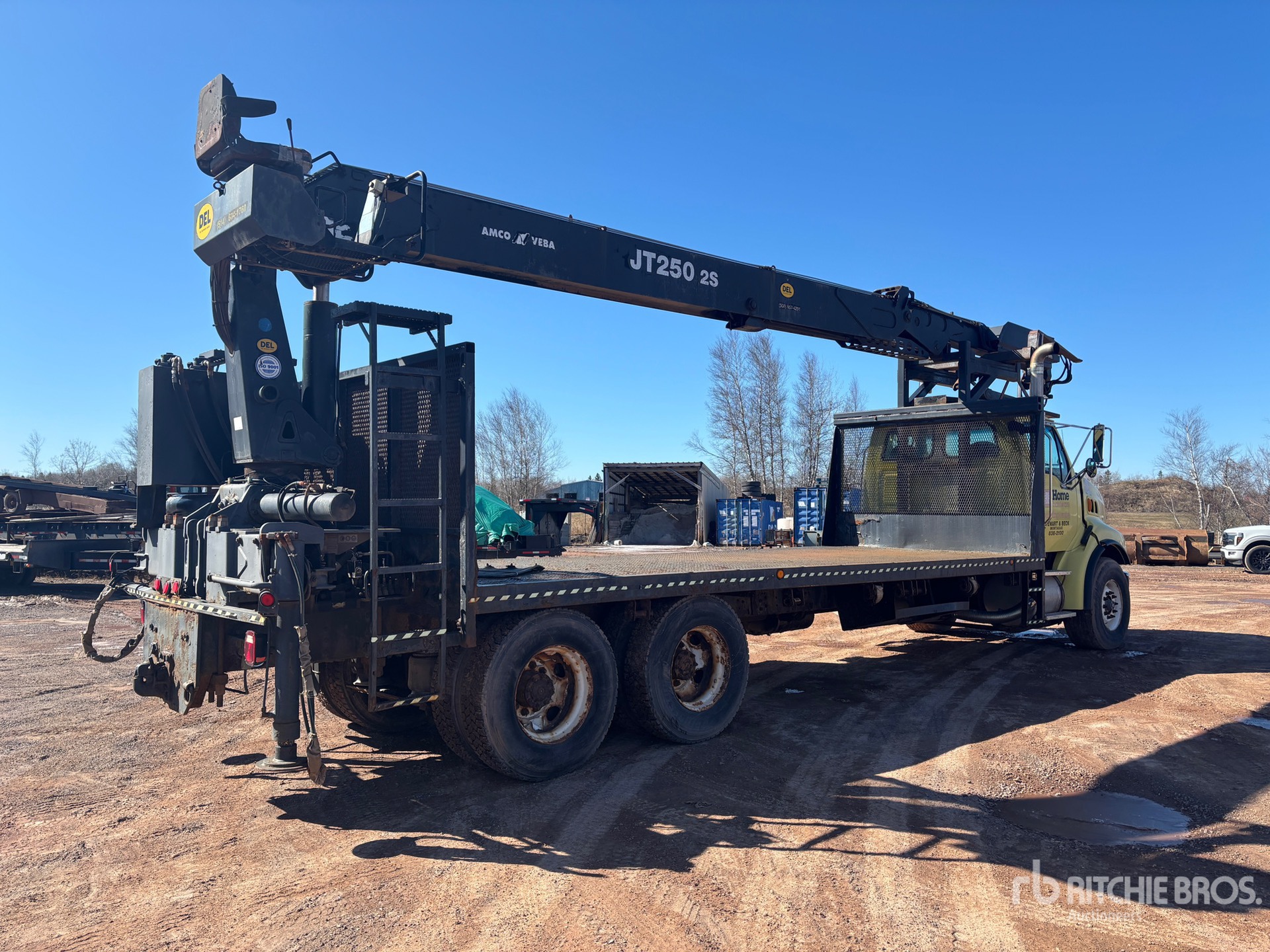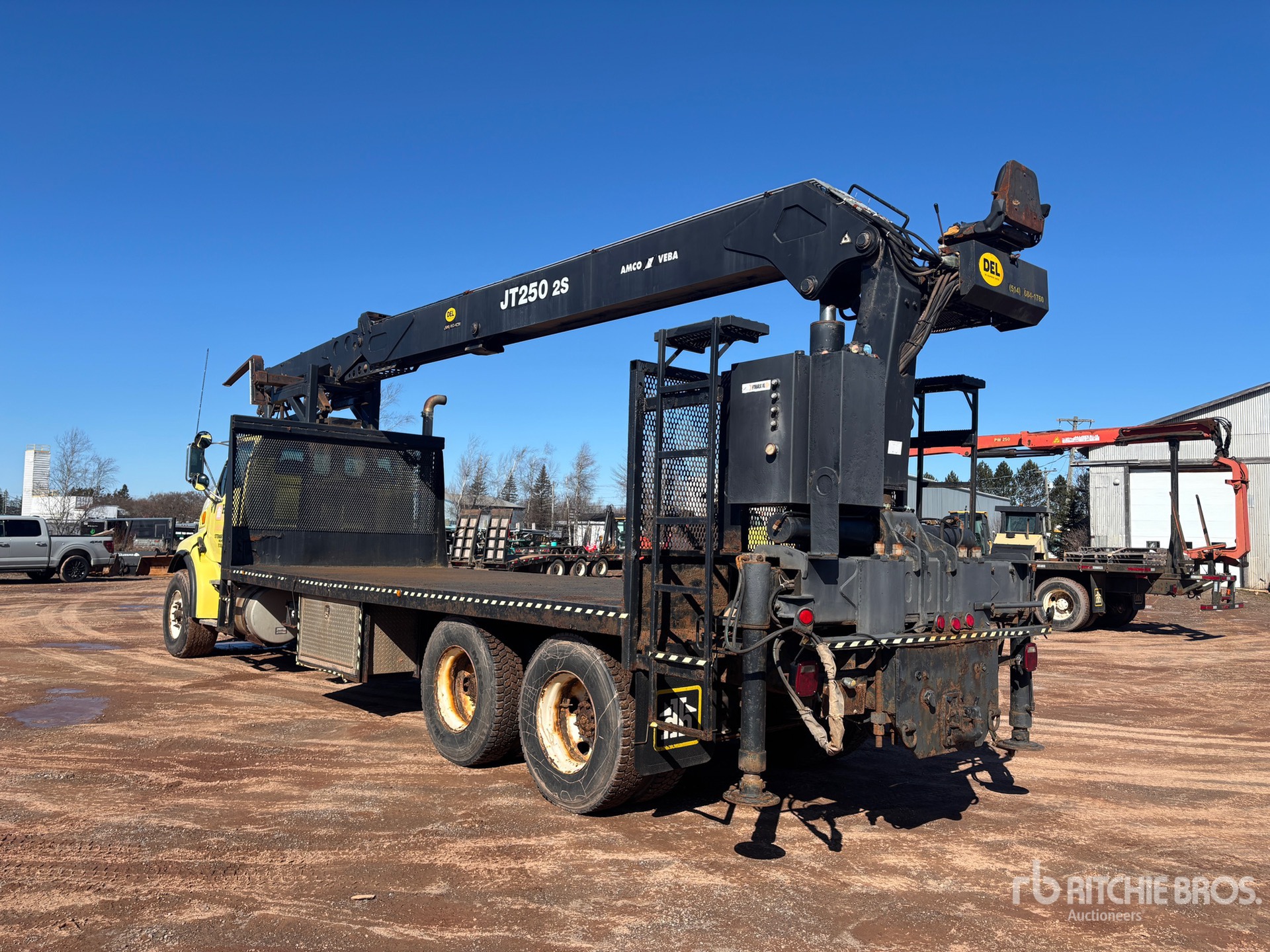 Cat C12 6 Cylinder Diesel 505 hp Engine, 2002 US EPA Label, CARB Compliant, 14088 Engine hrs, Eaton Fuller 18-Speed Manual Transmission, Differential Lock, 16000 lb Front Axle, 46000 lb Rears, 62000 lb GVWR, 425/65R22.5 Front Tires, 11R22.5 Rear Tires, Dual Steering Boxes, Double Frame, Air Ride Suspension, 290 in Wheelbase, PTO, Out and Down Outriggers, Rear Outriggers, Amco Crane, 23 ft x 102 in Bed, Pintle Hitch