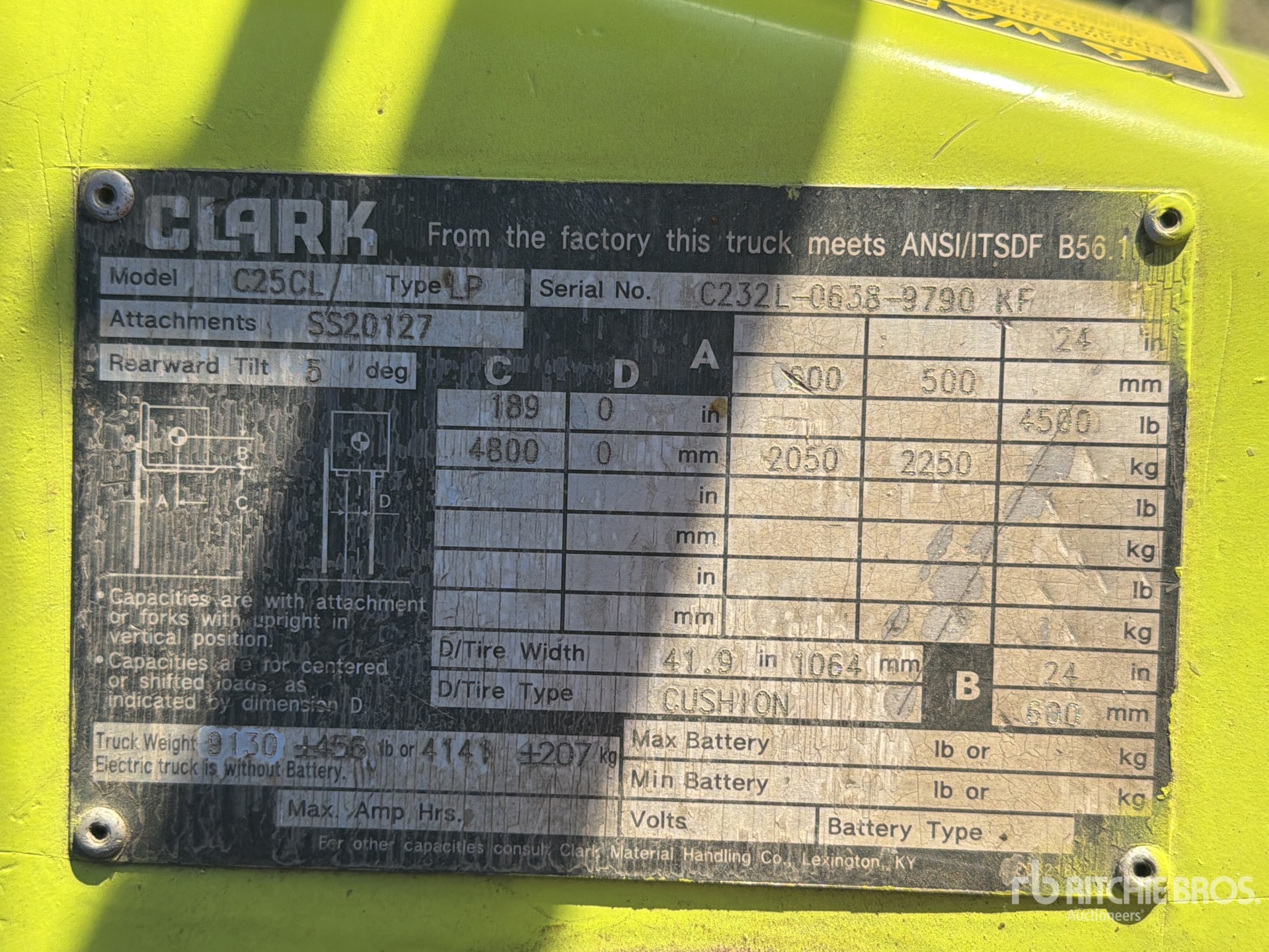 The detailed equipment information is limited in scope, and Ritchie Bros. Auctioneers has not inspected any aspects or components of the equipment other than those expressly set forth herein. Unless expressly stated, we make no representations or warranties, express or implied, concerning the equipment or its components, including without limitation any representations or warranties concerning functionality, conformity or compliance with any safety standard or requirement of any applicable authority or regulatory body, fitness for any particular purpose, or merchantability. You are strongly advised to perform your own detailed inspection of the equipment prior to bidding.
