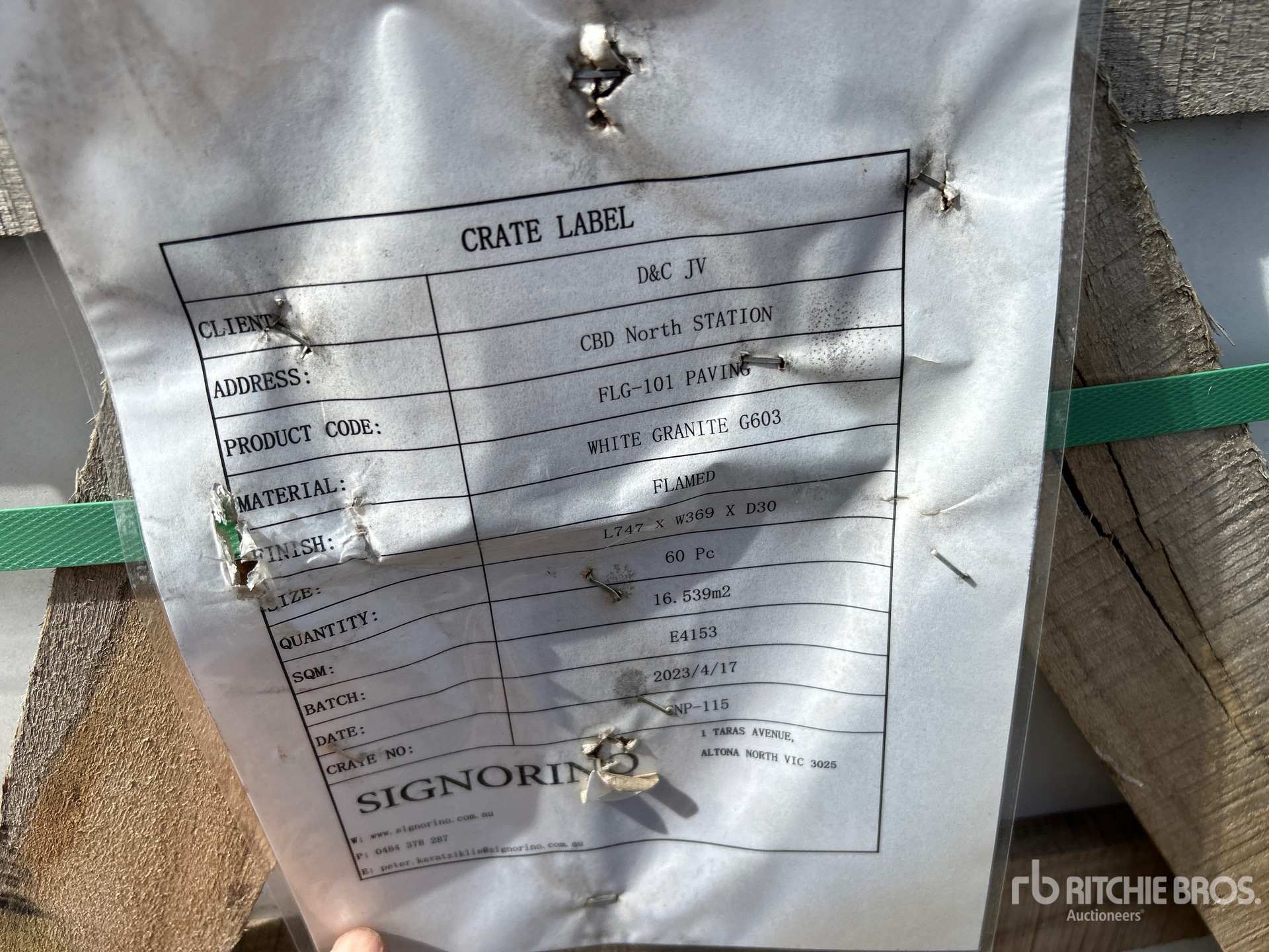• Drivers must bring a copy of the Ritchie Bros. Auctioneers release ticket to pick up the item.