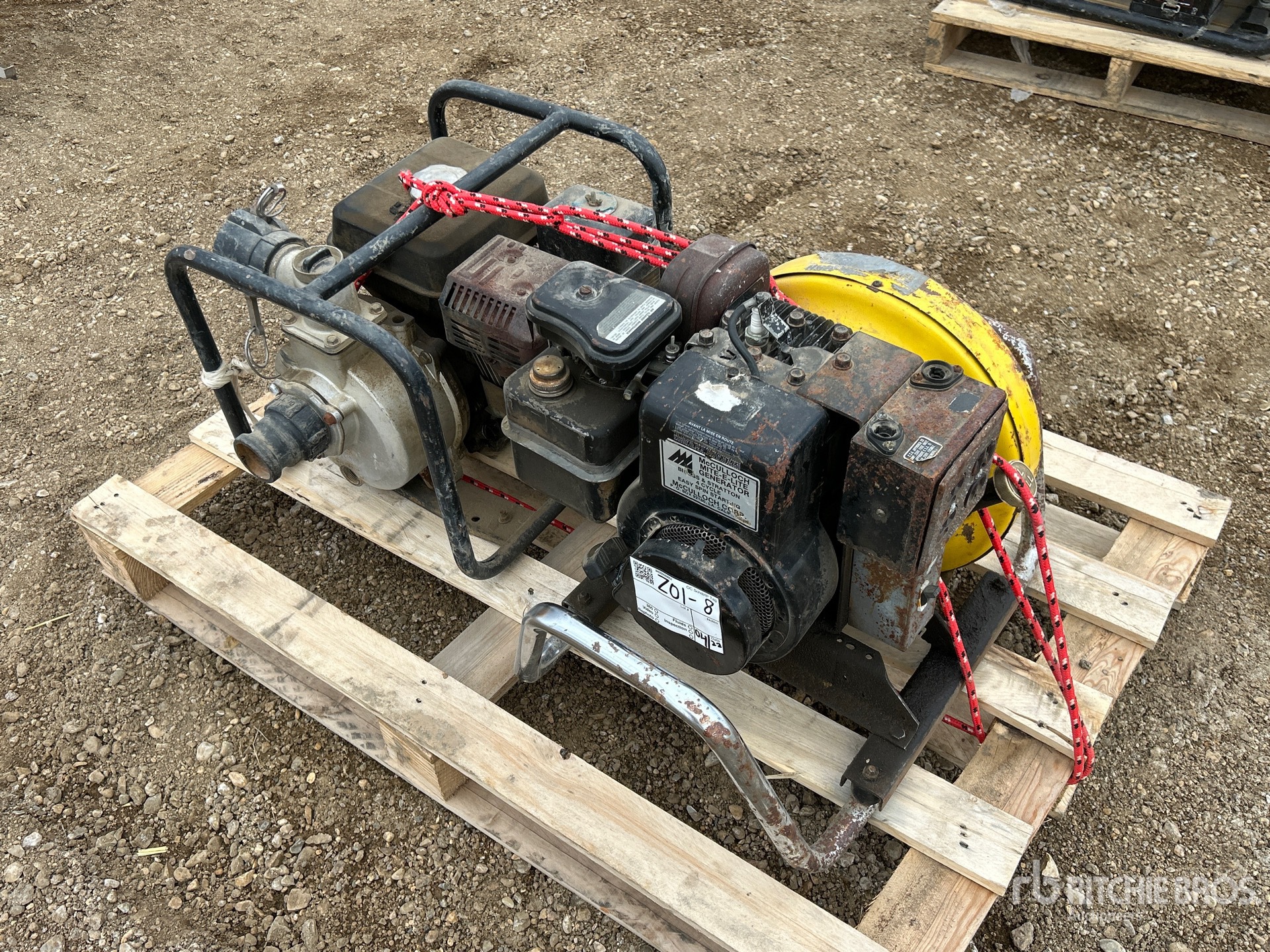 2 in Intake, 2 in Discharge, Centrifugal Water Pump, Honda 1 Cylinder 160 cc Gasoline Engine, (1) McCulloch Mite-E-Light 2000W Generator