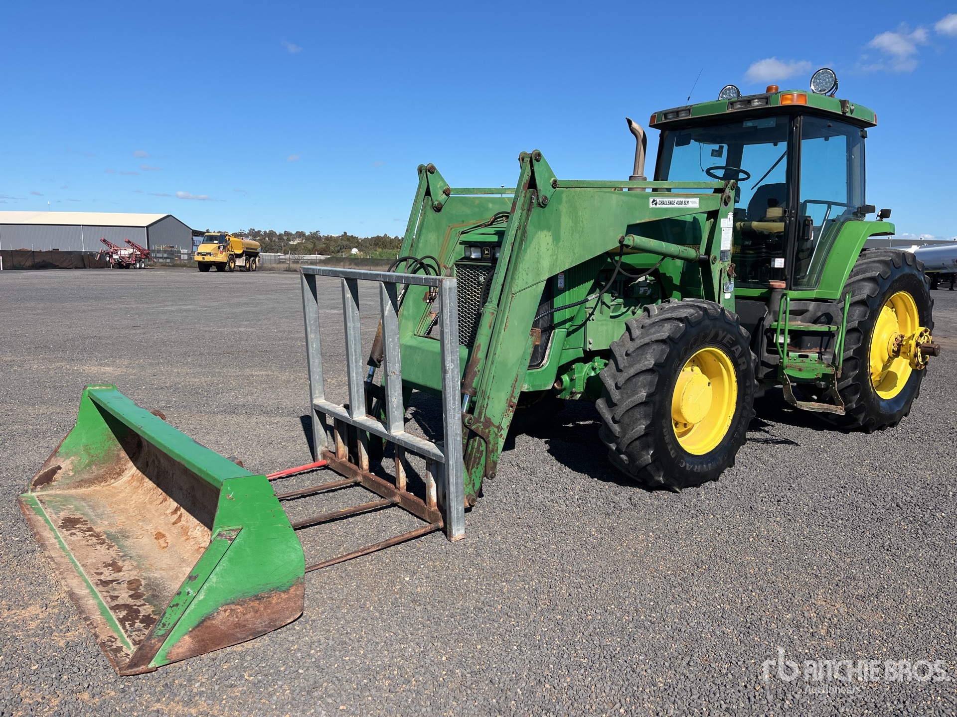 Enclosed Cab, Air Conditioner, 16 Forward 4 Reverse, PowerShift, GS2 1800 Display, ATU Autosteer, 160 hp Engine, Challenger 4300 Loader, Quick Coupler, Challenger 2450 mm Bucket, 4 Rear Remotes, ISOBUS, Exterior 3-Point Hitch Controls, 540/1000 PTO, 3-Point Hitch w/ Quick Hitch, Swing Drawbar, 420/85R28 Front Tires, 520/85R38 Rear Tires, Rear Duals Supplied, 4 x 1100 mm Tyne Hay Fork