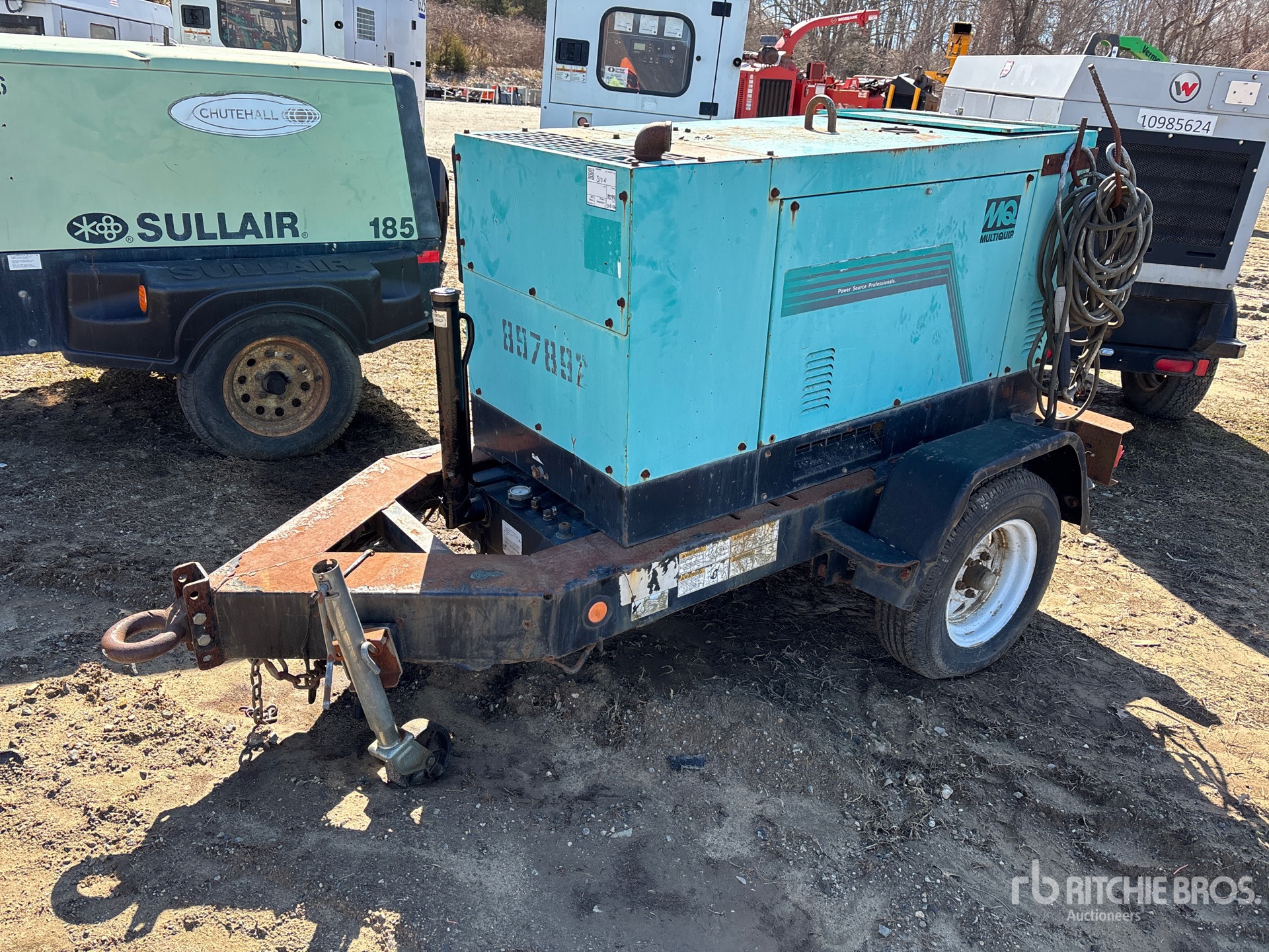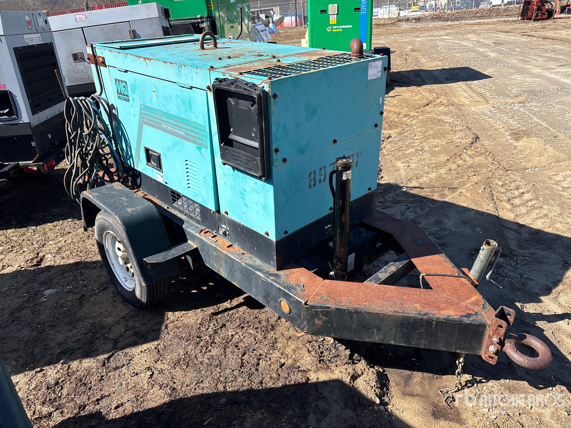 Kubota V1305 4 Cylinder 33.8 hp 1.335 L Diesel Engine, Welding Leads, /14 kW Rated Single Phase Output, 120 V / 240 V Rated Voltage, Lunette Ring Carrier Trailer