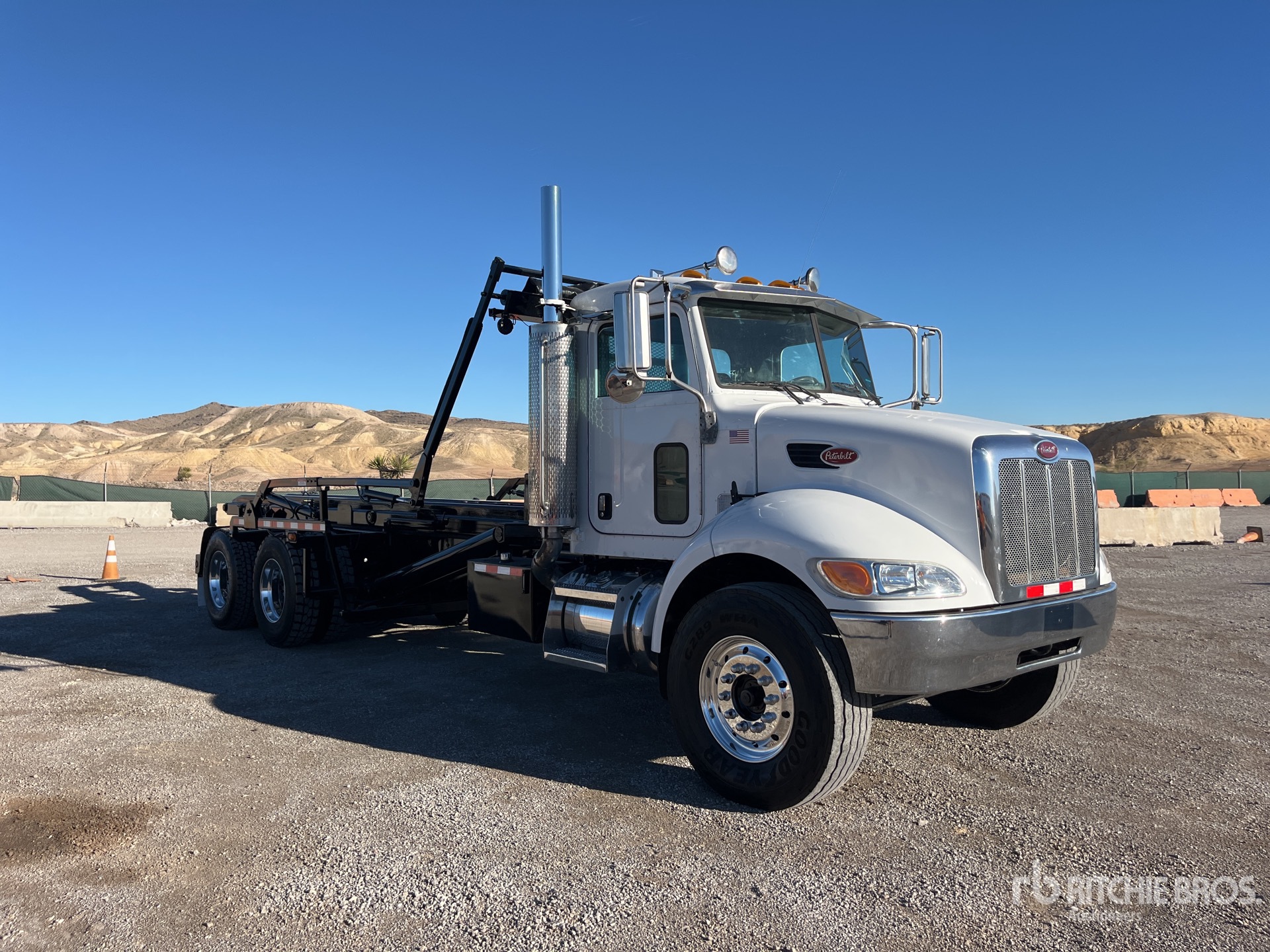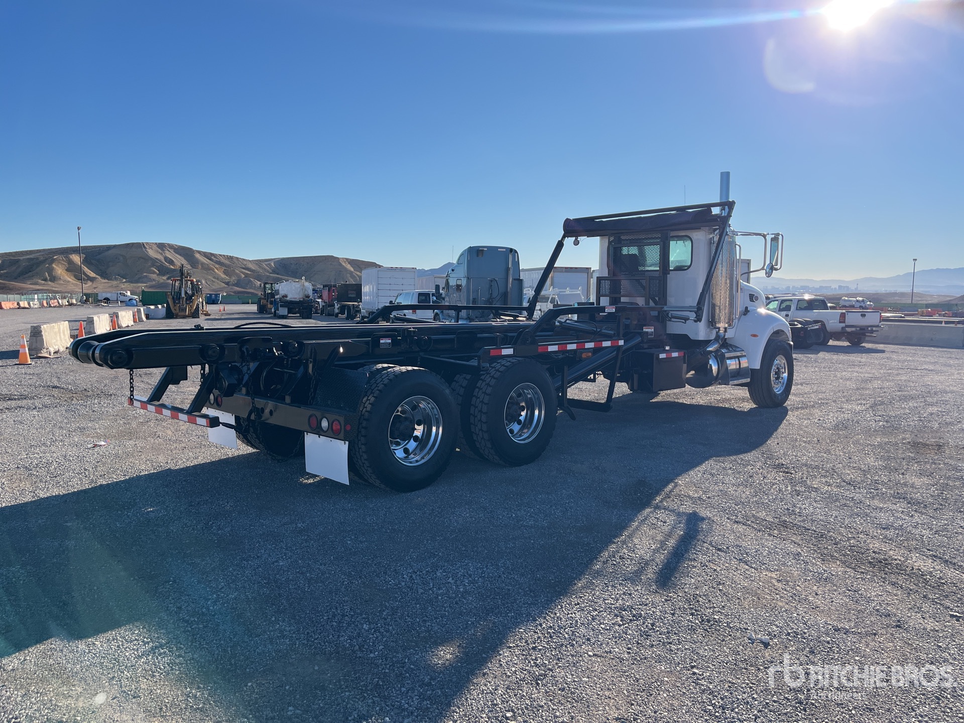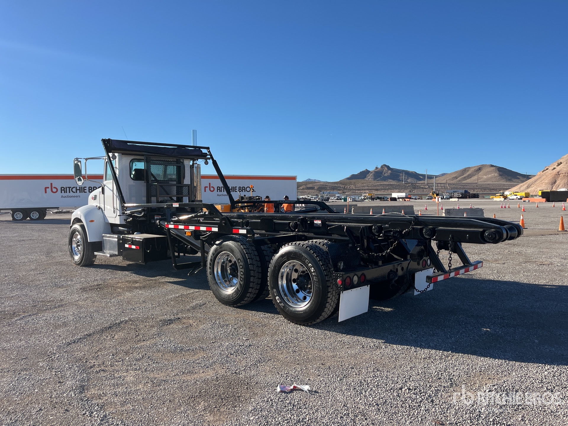Cat c7 6 Cylinder 7.2 L Diesel 275 hp Engine, 2005 US EPA Label, 23529 Engine hrs, Exhaust Brake, Eaton Fuller RT-8908LL 8LL Manual Transmission, 14600 lb Front Axle, 40000 lb Rears, Meritor RT-40-145 Drive Axles, 4.33:1 Axle Ratio, 54600 lb GVWR, Air Ride Cab, Aluminum Wheels, 315/80R22.5 Front Tires, 11R22.5 Rear Tires, Rubber over Walking Beam Suspension, 260 in Wheelbase, PTO, Norcal Waste Equipment CO NCRW-5 Roll-Off Body, 22 ft Hoist, Tulsa Winch